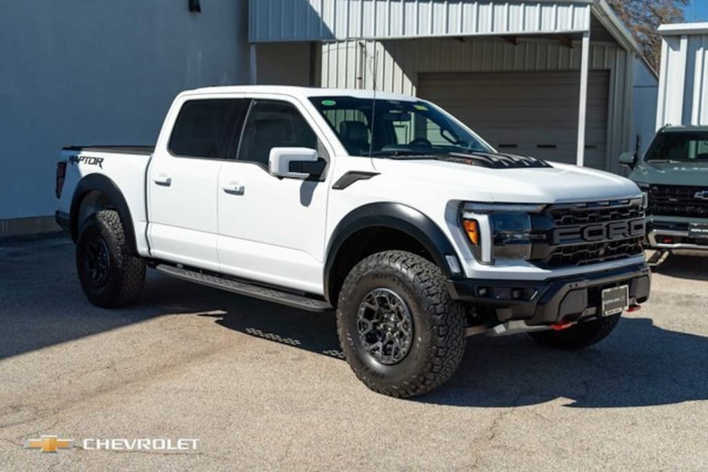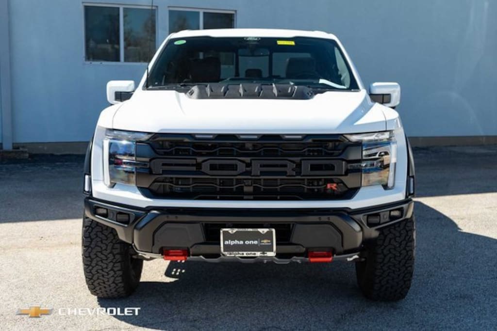 Clean CARFAX. Oxford White 2025 Ford F-150 Raptor 4WD 10-Speed Automatic 5.2L V8 Code Orange Front Tow Hooks, Code Orange Stitching Doors & Instrument Panel, Dual Valve Shocks, Equipment Group 803A Raptor R, Interior Code Orange Raptor R Badging, Modular Front Bumper, Navigation system: Connected Navigation, Raptor R Badge Tailgate Applique, Raptor R Exterior Graphics, Raptor R Exterior Theme, Raptor R Interior Theme, Raptor R Unique Grille, Raptor R Unique Hood Vent w/R Badge, RECARO w/Code Orange Stitching Front Seats, Removes 2KW Pro Power Onboard, Unique Carbon Fiber Appliques, Upgraded Dual Exhaust, Wheels: Raptor R Unique 17 Forged Aluminum.