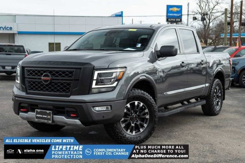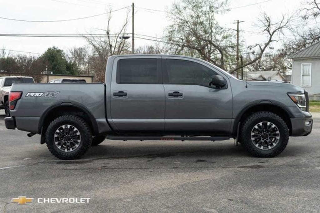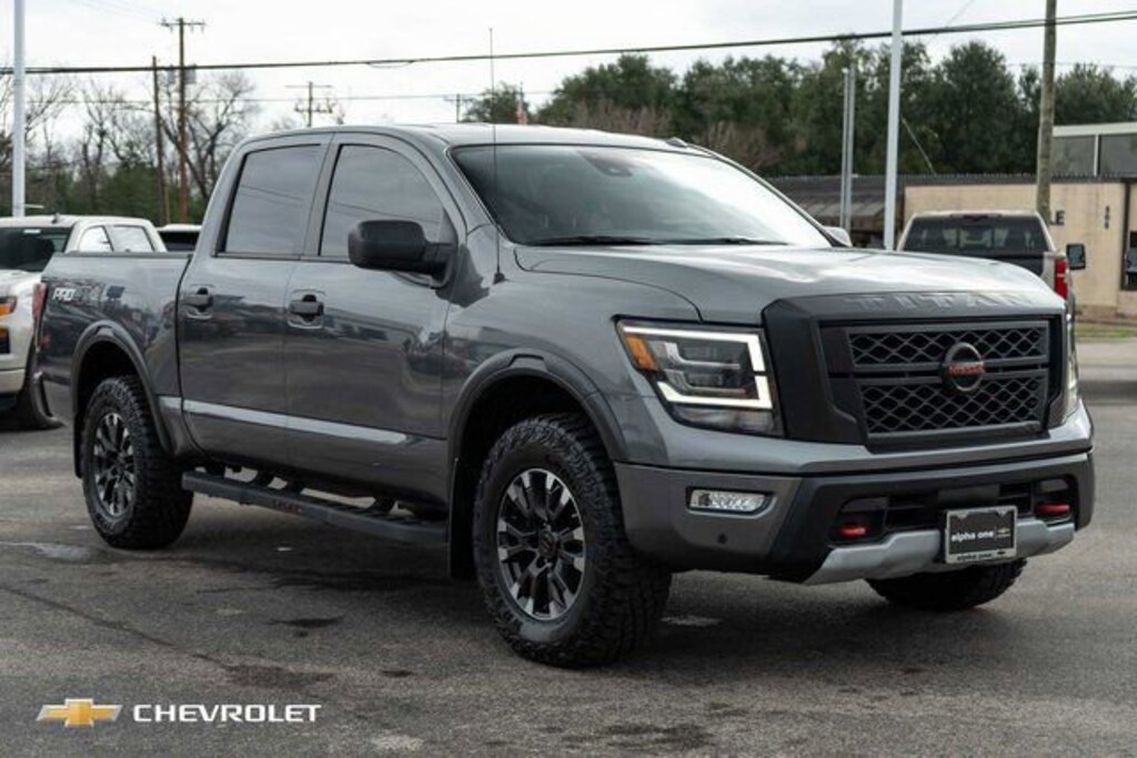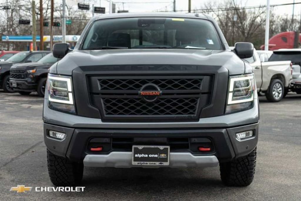 Gun Metallic 2021 Nissan Titan PRO-4X 4WD 9-Speed Automatic 5.6L V8 DOHC 32V 400hp 110V Outlet in Bed, All Season Floor Mats, Electronic Locking Tailgate, Fender Premium Audio System w/12 Speakers, Front & Rear Parking Sensors, LED Tailgate Area Illumination, LED Under Rail Bed Lighting, Navigation system: NissanConnect Navigation, Off Road Protection Package, Power Sliding Rear Window w/Defogger, PRO-4X Utility Package, Proximity Activation, Rear Utility Bed Step, Trailer Brake Controller, Trailer Light Check Function On Key Fob, Utilitrack System w/4 Tie-Down Cleats.